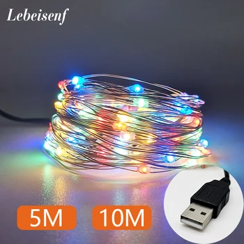 5M 10M Led Lichtslang Strip Zilver Draad Fairy Warm Wit Garland Christmas Party Bruiloft Decoratie Aangedreven usb