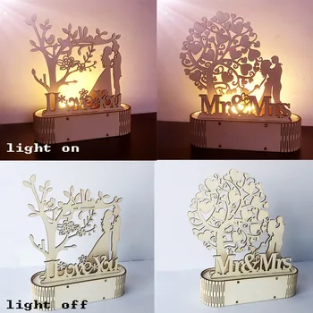 Verkoop - Liefde Houten Ornamenten Decoratie Rustieke Bruiloft Batterij Led Nachtlampje Mr & Mrs Lamp Geschenken Valentine Verjaardagscadeau Dag Ambachten Beste aanbiedingen