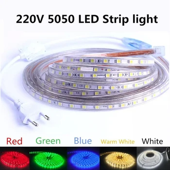 ^ Goedkoop Ac 220V 230V 240V Led Verlichting Strips Gekleurde Lint Tape Diode 5050 Neon Streep + Eu Plug voor Outdoor Waterdichte Tuin Home Decor Online