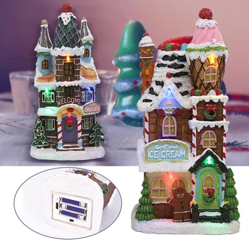 ^ Goedkoop Miniatuur Sneeuw Huizen Met Led Licht Kerst Decoratie Voor Thuis Nieuwjaar Kids Xmas Gift Hars Kerst Scène Dorp Goedkoop online