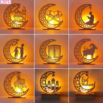 Wie verkoopt de goedkoopste - Moon Star Led Licht Ramada Eid Mubarak Hout Ornament Opknoping Hanger Ramadan Lichten December Eid Mubarak Moslim Islam Eid Party decor Beste aanbiedingen