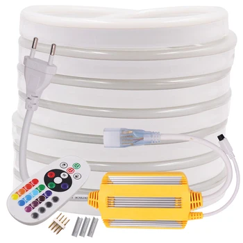 Kopen - Flex Rgb Neon Strip Led Licht Afstandsbediening 220V 240V Ac 5050 Touw Licht Waterdichte Flexibele Led Tape home Decoratie String Beste aanbiedingen