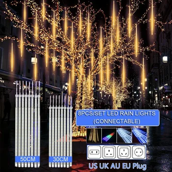 30Cm 50Cm 8 Tube Waterdichte Meteor Shower Rain Led String Light Outdoor Kerst Decoratie Voor Home Tree Eu/Us/Uk/Au
